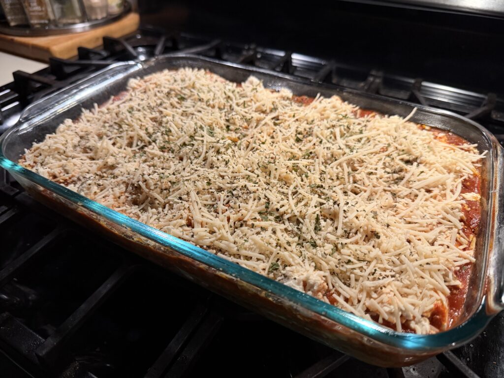 Given that it’s a food blog, and last night was New Year’s Eve, I can’t pass up an opportunity to comment on how we celebrated. We had a truly magnificent ravioli casserole, consisting of Trader Joe’s Vegan Spinach & Cashew Ravioli, Gefen Marinara Pasta Sauce, Kite Hill Almond Milk Ricotta (a new one, and excellent) and topped with Follow Your Heart Shredded Parmesan.